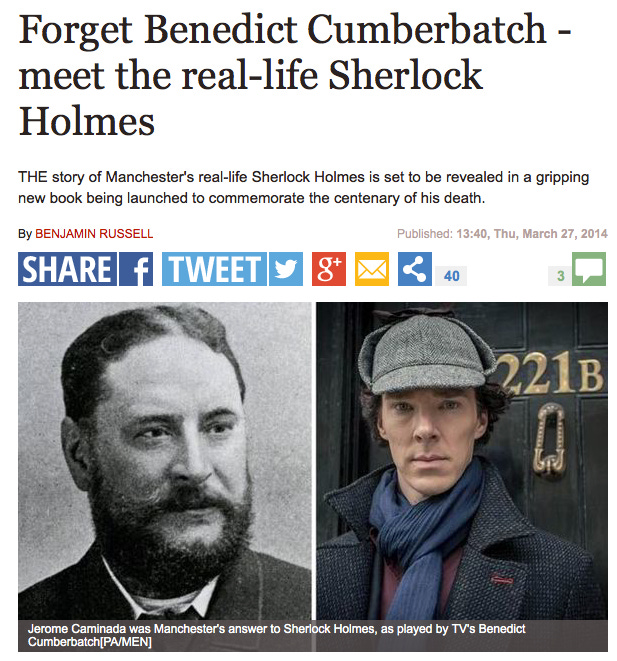 Based on the two volumes of his memoirs, I wrote a biography of the legendary detective. When it was published, it attracted a lot of unexpected attention. I was interviewed by the Sunday Times, after which articles appeared all over the national and international press. A highlight was when a relative called from Australia to say that she had read about my book in the Sydney Morning Herald. Articles about Caminada were published also in Canada, India, Ireland and Italy. As the popular series of Sherlock starring Benedict Cumberbatch was airing at the time, there were lots of lighthearted comparisons between the fictional detective and his so-called real-life counterpart. I wrote articles about him for the Sunday Express, All About History magazine, and other publications. I also had the opportunity to make a short film for The One Show, which was great fun!